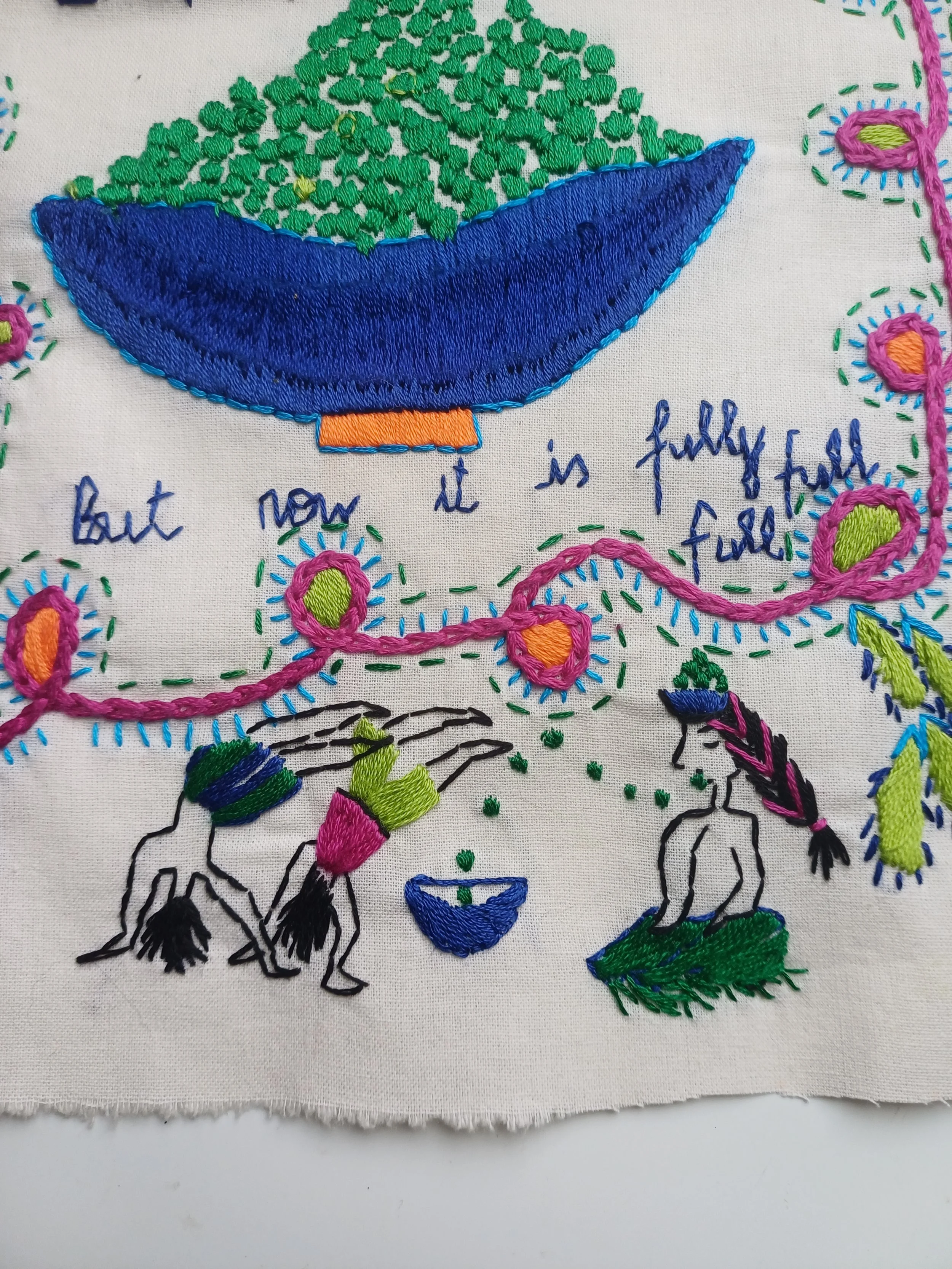 A3 high quality print of an original hand embroidery. The print celebrates a return to joy after loss.